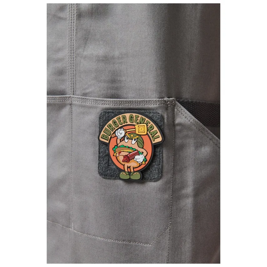 Meso, vatra, dim – Vi ste komandant roštilja i Burger General kecelja je spremna da stane sa vama u žaru bitke. Uključuje ekskluzivnu zakrpu „Burger General“, Molle traku, omču za ime, podesive kaiševe za vrat i struk i pet džepova.