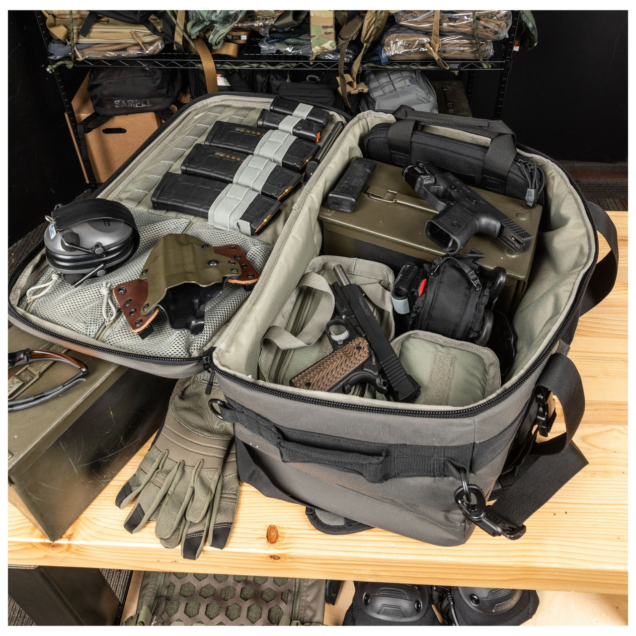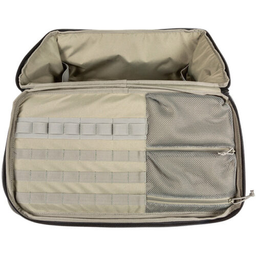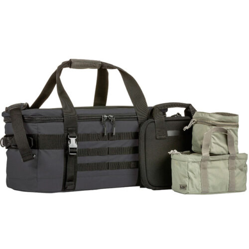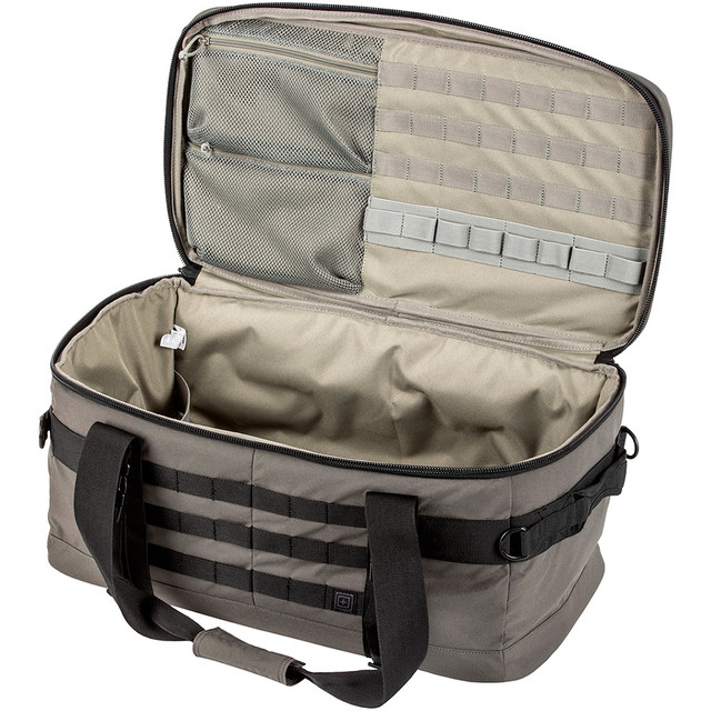 Metke, pištolji, magovi, vaša futrola, kajiš i još mnogo toga, Range Master Duffel predstavlja veliki izazov kada je u pitanju organizovanje vaše opreme. Gornji deo ima kompresijski oblikovan EVA poklopac sa trakom za ime i unutrašnjim mrežastim džepovima, elastičnim trakama i MOLLE mrežicom. Unutra se nalaze bočne elastične trake za bezbedno držanje kutije za jedan pištolj. Range Master sadrži jednostruku futrolu za pištolj 5.11 i male i srednje torbice za Master torbe, koje su uključene u ovu postavku. Spoljašnji MOLLE dodatak olakšava prilagođavanje vašeg tereta, a ovu torbu možete nositi sa uklonjivom trakom za rame ili sa gornjom ili bočnom ručkom. Da bi sva vaša streljačka oprema i dodaci bili dobro pri ruci i na dohvat ruke, pravilo Range Master Duffel.